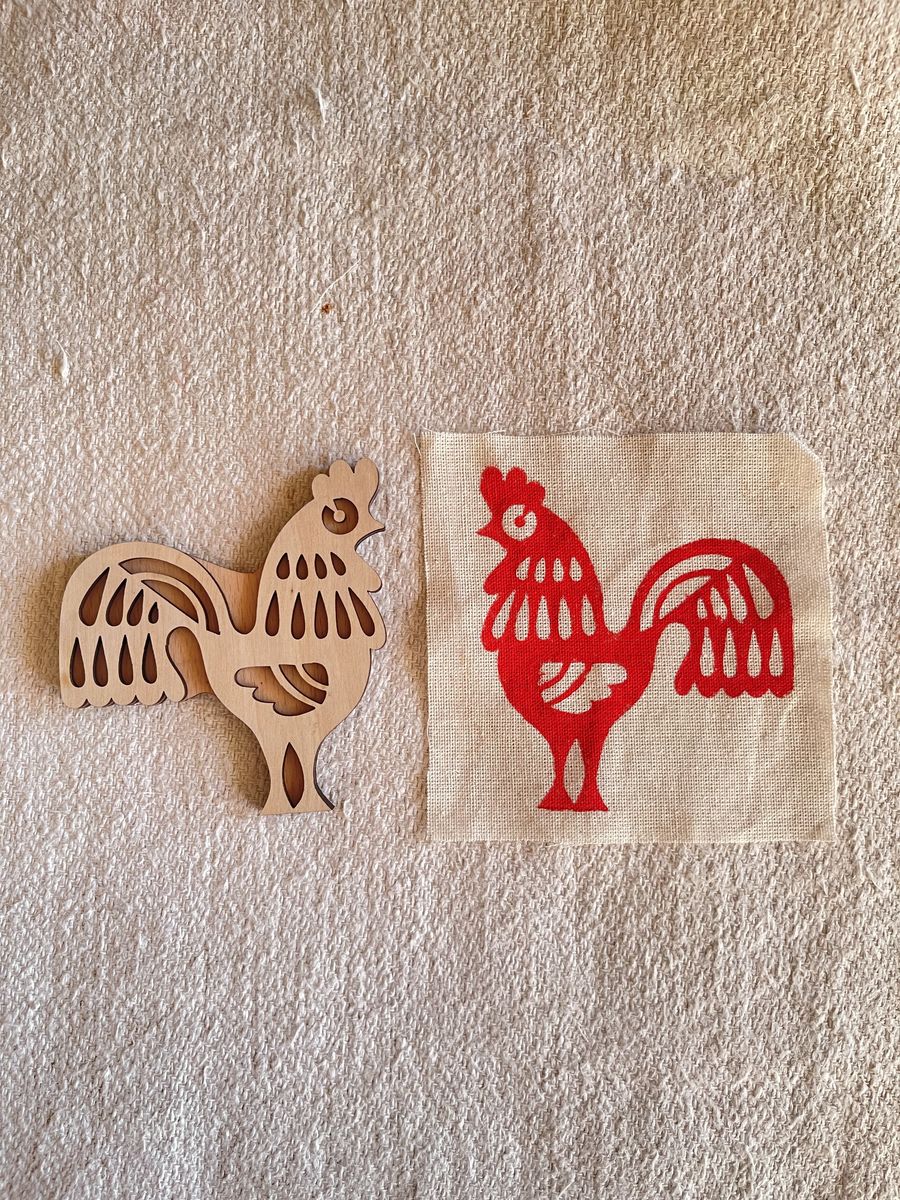 Губкою або валиком нанесіть фарбу на робочу поверхню штампа. Зробіть відбиток на тканині/папері міцно натиснувши штамп до матеріалу.