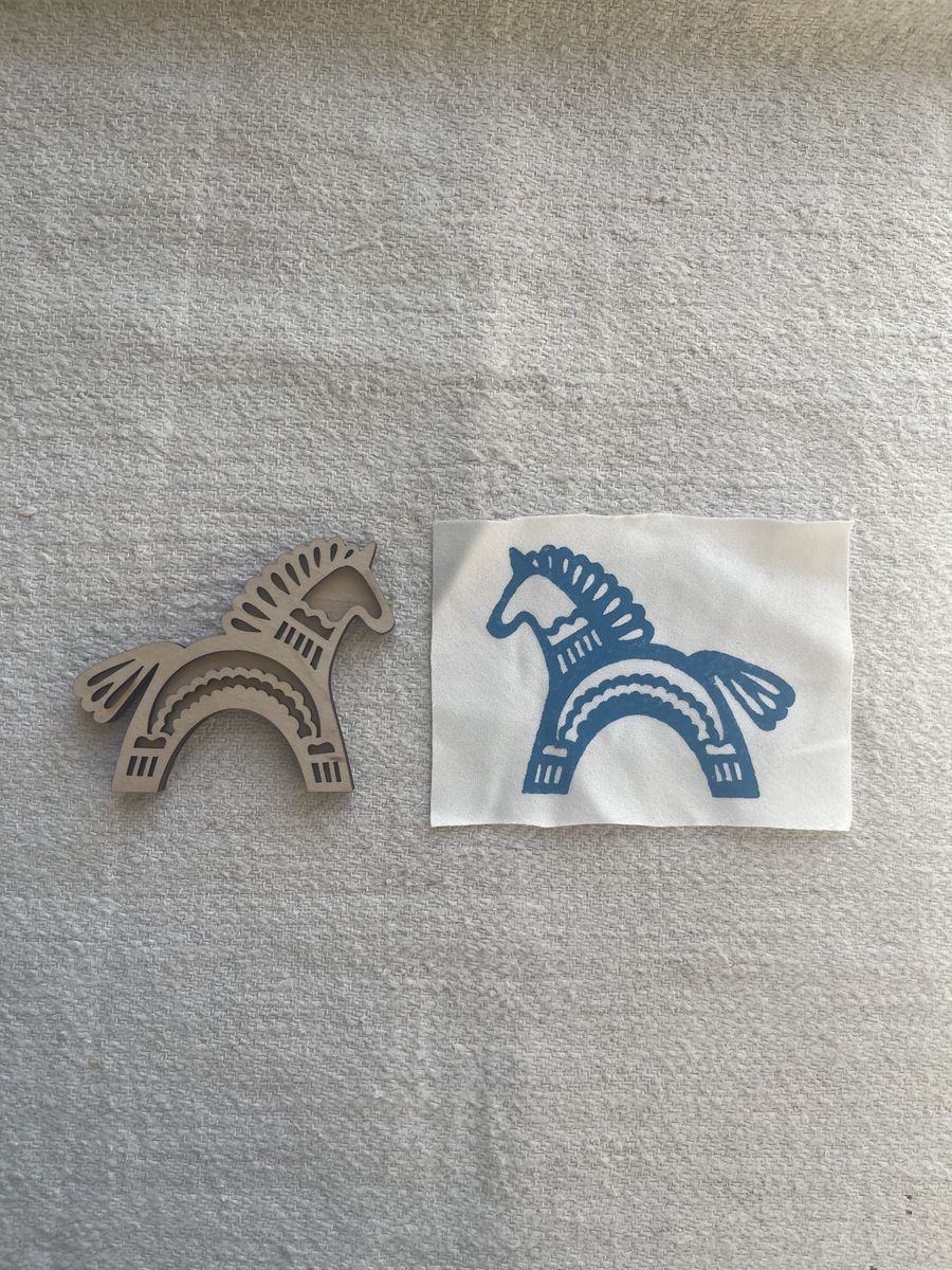 Штамп продається з приклеєним стовпчиком зі зворотної сторони, для зручного утримування штампа при нанесенні фарби та в процесі нанесення відбитків на тканину. Якщо в процесі експлуатації стовпчик відклеїться, його можна знову приклеїти міцним клеєм – столярний клей ПВА, будівельний клей для дерева, клей “Момент”, суперклей або термоклеєм з гарячого пістолета.
