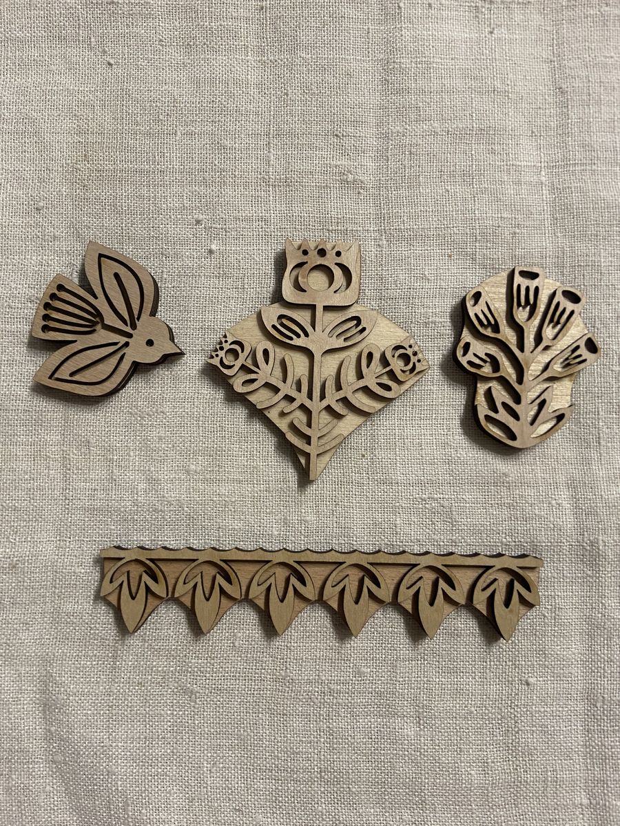 Такі дерев’яні штампи використовуються в техніці “Вибійка” – нанесення відбитка на тканину. Також, штампи можна використовувати для: