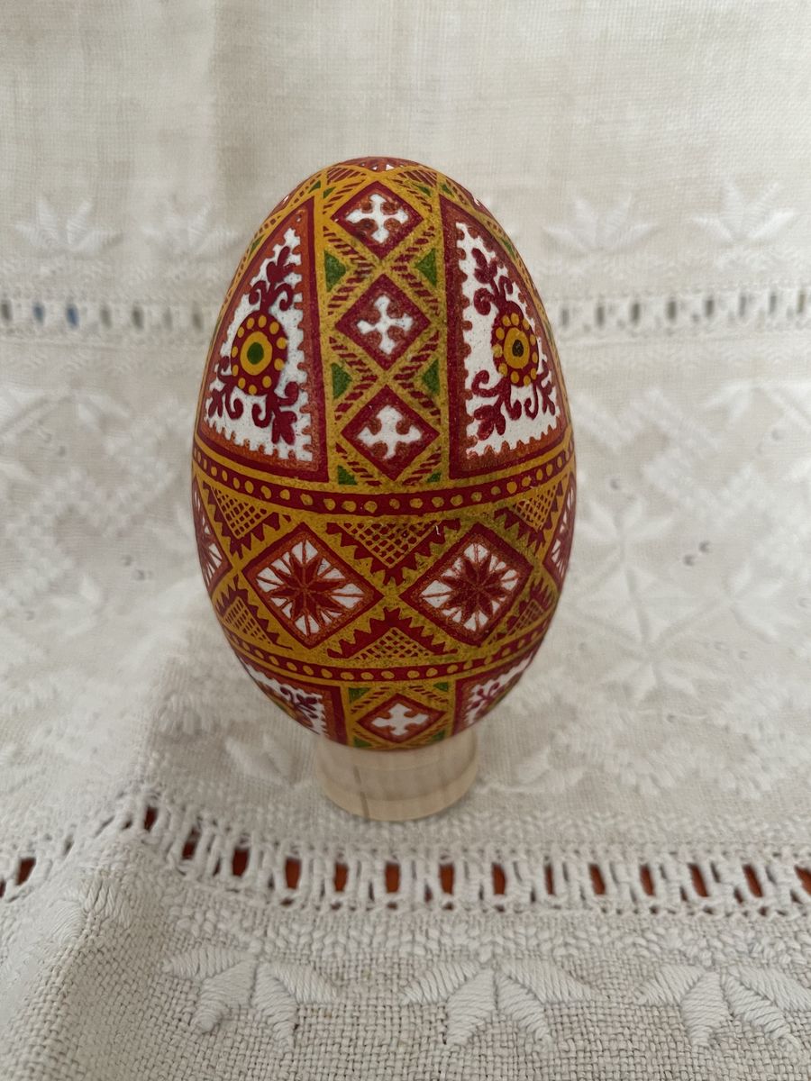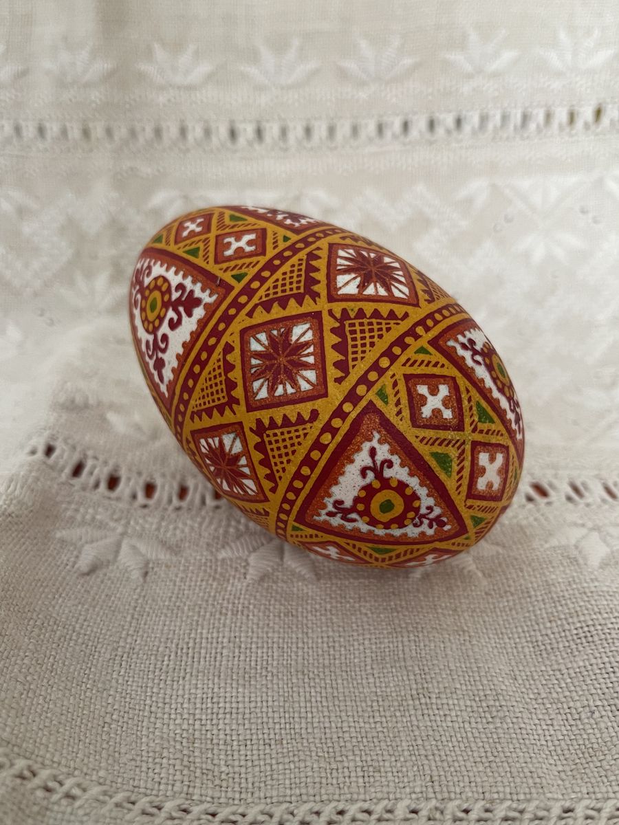 Матеріал писанки: гусяче яйце, віск, анілінові фарбники