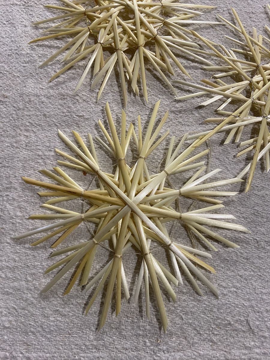Сніжинки виготовлені з соломи.