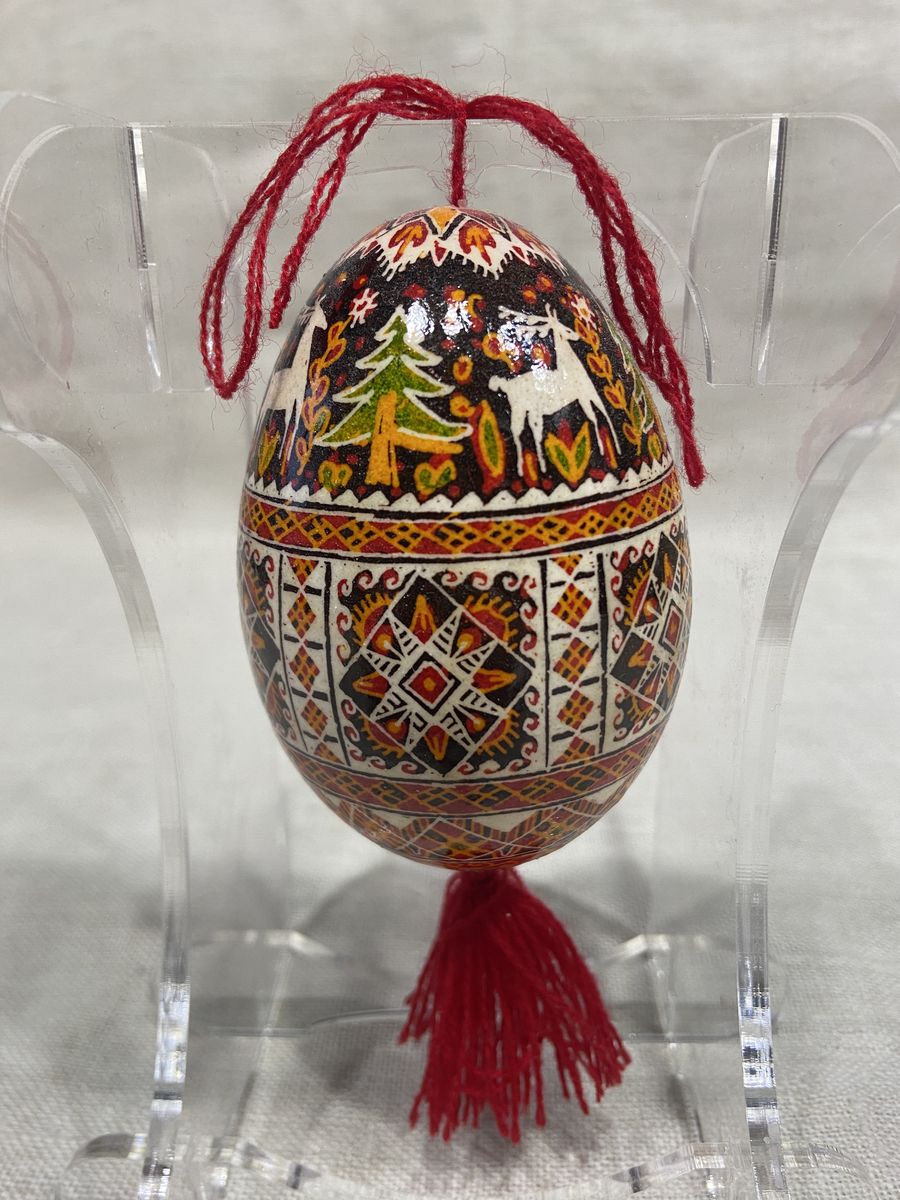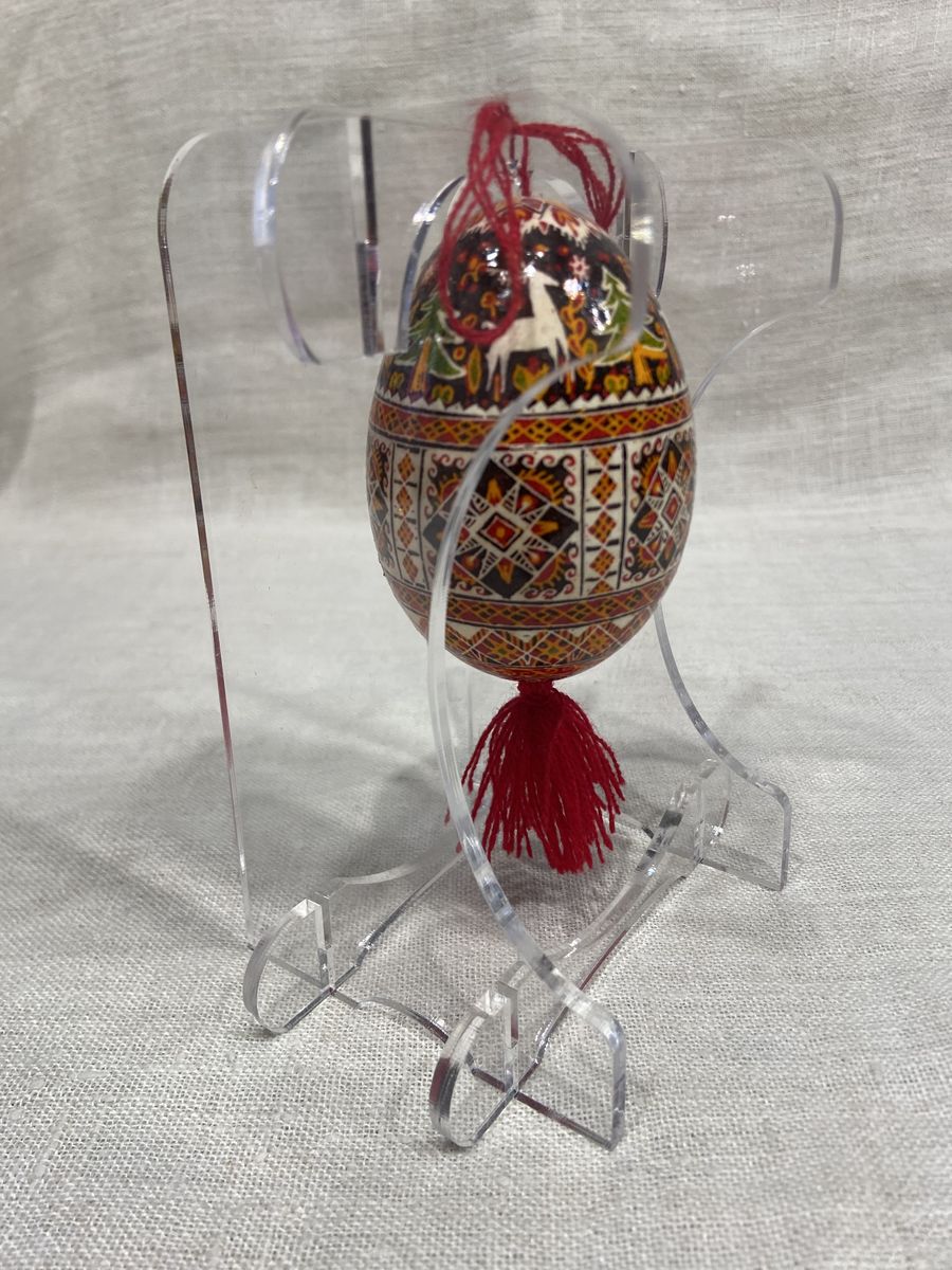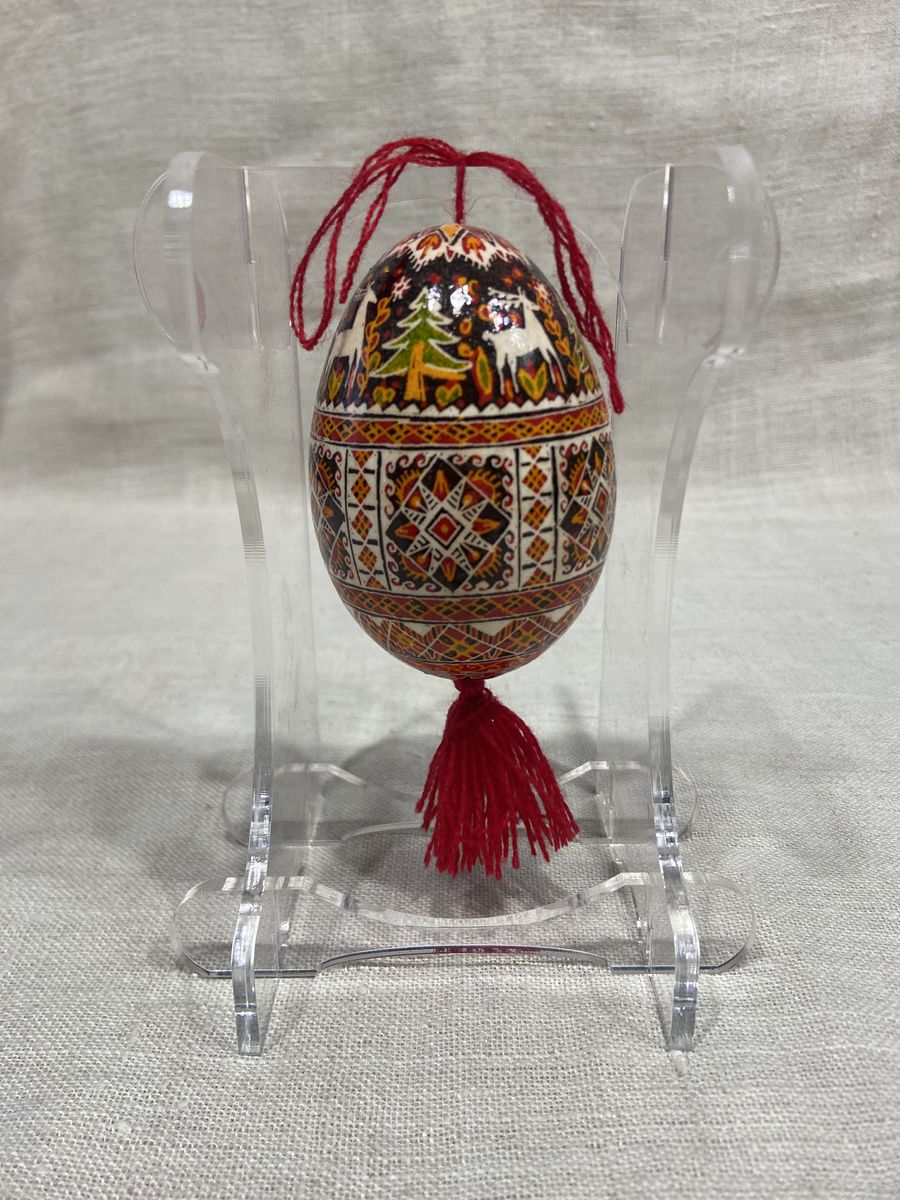 Матеріал писанки: гусяче яйце, віск, анілінові фарбники, лак
