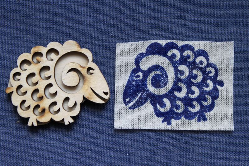 Губкою або валиком нанесіть фарбу на робочу поверхню штампа. Зробіть відбиток на тканині/папері міцно натиснувши штамп до матеріалу.